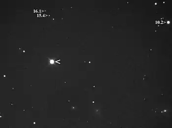 | Видимая звёздная величина (V) | Vmax = +7.34m, Vmin = + 15m[2] | ||||||