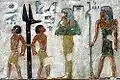 Олицетворяющие Гелиополь и Мемфис боги с подношениями