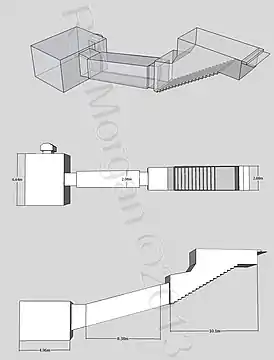 К гробнице ведёт лестница из 20 ступеней, вырубленных в скале. План гробницы, изображённый на найденном Пинч Брок в 1993 году остраконе, возможно, указывает на расширение входа после начала работ. Эту же идею подтверждают метки на стенах гробницы. Вероятно, лестницу расширили, потолок подняли, а количество ступеней увеличили.