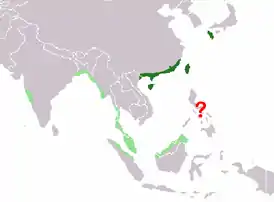 Ареал включает в себя Вьетнам, Китай, Тайвань, Японию и индонезийские острова Бунгуран. Возможно встречается и на севере Филиппин[3].