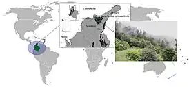 Южная Америка. Эндемик Колумбии, 2000—2300 м, южные склоны горного массива Сьерра-Невада-де-Санта-Марта на побережье Прикарибской низменности департамента Сесар[1].