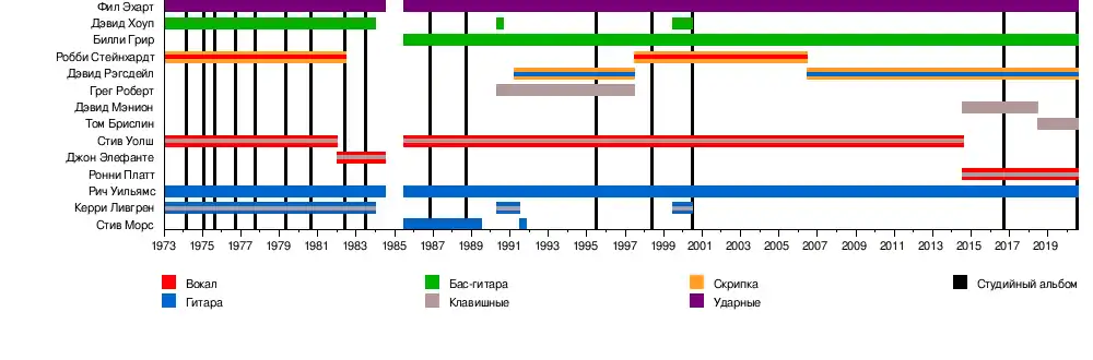 - Керри Ливгрен — гитара, клавишные, вокал (1973—1983, 1990—1991, 1999—2000)