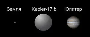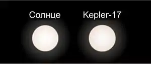 ![]() Сравнительные размеры Солнца и Kepler-17. | |
