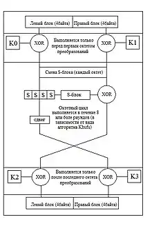 После этого все шаги повторяются заново, включая смену S-блока каждые 8 раундов.