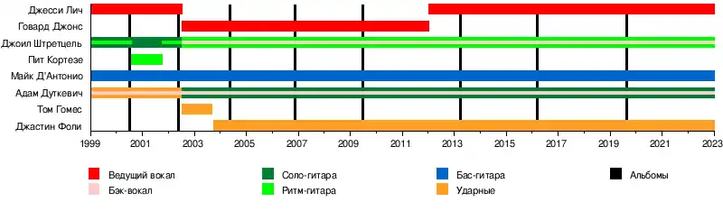 - Джесси Лич — ведущий вокал (1999—2002, 2012—настоящее время)
