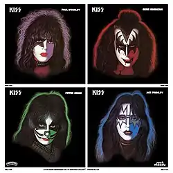 Идея макияжа принадлежала Полу Стэнли и Джину Симмонсу. Она была принята положительно и, используя театральный грим, каждый участник придумал себе свой уникальный макияж. Явное влияние на макияж имели увлечения участников вроде комиксов, фильмов ужасов и т. п. Джин Симмонс стал краситься в «Демона», Питер Крисс — в «Кота», Эйс Фрейли — в «Космического туза» (Space Ace), а Пол Стэнли сначала стал «Звёздным дитём» (Star Child), затем изменил имидж на «Бандита» (Bandit), но практически сразу вернулся к первоначальному варианту. Макияж каждого из участников в первые годы претерпел многочисленные изменения. Пожалуй, больше всего изменился макияж Питера Крисса, а наименее — макияж Эйса Фрейли, который, придумав свой образ, больше его не менял.