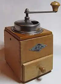 Компания «Kissing & Möllmann» — также известная как «K&M» или «KyM» — была основана изерлонскими предпринимателями Фердинандом Мёльманом и Иоганном Германом Киссингом в 1826 году. До 1834 года предприятие называлось «Kissing, Möllmann & Co.» и поставляло свою продукцию (арматуру, подсвечники, корабельные колокола) в Италию, Испанию и Российскую империю, а в 1865 году оно получило концессию на строительство литейного завода на улице Бахштрассе — рядом с железнодорожной линией Изерлон-Менден. В 1872 году здесь было открыто собственное производство кофемолок[1]; главное здание завода было расширено в 1898 году. В 1894 году на заводе работало 120 человек, производя 200 000 кофемолок ежегодно: «Kissing & Möllmann» стала крупнейшим производителем кофемолок в Германской империи. Первая мировая война существенно сократила торговлю и впоследствии она никогда не достигла довоенного уровня. Великая депрессия и Вторая мировая война также сказались на деятельности компании, но она всё же смогла их пережить: ей пришлось объявить о банкротстве только в 1980 году. В конце 2013 года в изерлонском музее ремесел и истории почты была открыта отдельная коллекция, посвященная кофемолкам «Kissing & Möllmann».