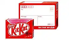 - 21 апреля 2008 года японское подразделение компании Nestlé и бренд KitKat, который в Японии, благодаря созвучию с выражением kitto katsu, связан с пожеланиями удачи, начал продаваться в коробках, которые можно посылать по почте. Проект так и называется — KitKat Mail («Почта KitKat»). Прямо на упаковке KitKat Mail можно написать короткое сообщение, адрес получателя и отправителя и опустить пожелание удачи в почтовый ящик (стоимость почтовой доставки по стране уже включена в стоимость продукта).