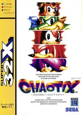 Knuckles’ Chaotix, в Японии известная как Chaotix (яп. カオティクス Каотикусу, рус. Хаотикс) — видеоигра в жанре платформер, разработанная студией Sonic Team и выпущенная компанией Sega на игровую приставку 32X весной 1995 года. Позже игра была переиздана для Windows через сервис цифровой дистрибуции GameTap.