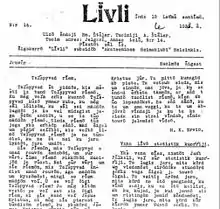 Газета Līvli является наследием ливской культуры. В издании публиковались многие известные ливские поэты и писатели.