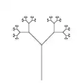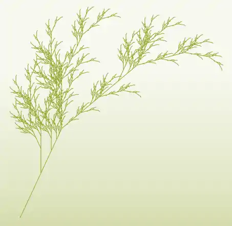 Здесь F означает «рисуем отрезок», − означает «повернуть влево на 25°», а + означает «повернуть вправо на 25°». X не соответствует какому-либо действию при рисовании используется только для построения кривой. Квадратная скобка «[» соответствует сохранению текущих значений позиции и угла, которые восстанавливаются, когда выполняется соответствующий символ «]».
