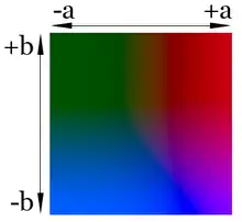 В цветовом пространстве Lab значение светлоты отделено от значения хроматической составляющей цвета (тон, насыщенность). Светлота задана координатой L (изменяется от 0 до 100, то есть от самого темного до самого светлого), хроматическая составляющая — двумя декартовыми координатами a и b. Первая обозначает положение цвета в диапазоне от зеленого до красного, вторая — от синего до желтого.