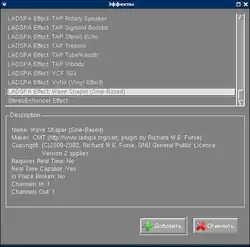 Кроме того, благодаря jack-rack, LADSPA-плагины можно использовать с любой программой, если она выводит этот аудиопоток через JACK.