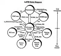 Link Access Procedure, Balanced (LAPB) - сбалансированный протокол доступа к каналу передачи данных.Является протоколом канального уровня, используемым для передачи пакетов стандарта X.25. Протокол LAPB является битовым ориентированным протоколом и входит в семейство протоколов HDLC (High Level Data Link Control),что гарантирует надежную передачу кадров.LAPB входит в число протоколов рекомендованных МСЭ-Т.