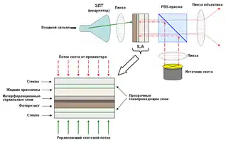 ![]() Упрощенная схема работы ILA- или LCLV-устройства (предшественник D-ILA) |