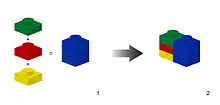 Детали Lego всех разновидностей составляют универсальную систему. Несмотря на изменения в дизайне и назначении отдельных предметов на протяжении многих лет, каждый предмет остается каким-то образом совместимым с существующими предметами. Кубики Lego 1958 года по-прежнему взаимосвязаны с теми, которые производятся в настоящее время, а наборы Lego для маленьких детей совместимы с наборами, созданными для подростков. Шесть кирпичей 2 × 4 шипа [14] можно комбинировать 915 103 765 способами. [15]