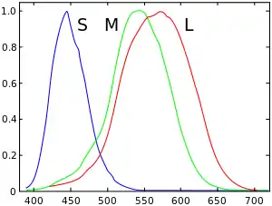 LMS — цветовое пространство, представляющее собой отклики трёх типов колбочек. В зависимости от спектральной чувствительности существуют L- (long wavelength), М- (middle wavelength) и S- (short wavelength) колбочки.