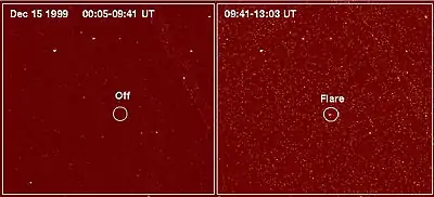 В декабре 1999 года орбитальный телескоп Чандра зарегистрировал вспышку на LP 944-020 в рентгеновском диапазоне. Это было первое наблюдение вспышки на коричневом карлике. По мощности она была сравнима с небольшой вспышкой на Солнце. Но она превосходила в миллионы раз мощность вспышек, регистрируемых на Юпитере. Подобное явление не характерно для коричневых карликов, поскольку они имеют довольно холодную атмосферу. Исследователи предполагают, что вспышку породило мощное электромагнитное поле LP 944-020: чрезвычайно намагниченный газ, циркулирующий на глубине около 97 километров под поверхностью коричневого карлика, разогрелся до такого состояния, что произвёл мощную вспышку рентгеновского излучения.