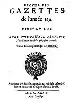 «La Gazette» — первая французская газета, издававшаяся с 30 мая 1631 года, традиционно считающаяся первой европейской газетой, отвечающей современным стандартам.