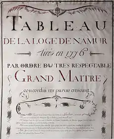 Масонская деятельность начинает развиваться в Намюре в середине восемнадцатого века. В настоящее время не существует прямых доказательств о точной дате основания этой ложи в Намюре, но первое документально оформленное упоминание даты основания относится ко дню празднования зимнего Иоанна в 1768 году[8].