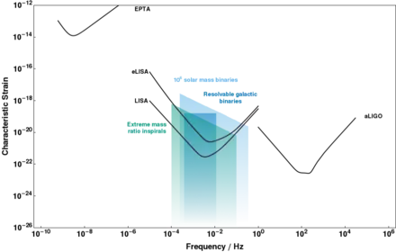 - Amaro-Seoane, Pau; Aoudia, Sofiane; Babak, Stanislav; Binétruy, Pierre; Berti, Emanuele; Bohé, Alejandro; Caprini, Chiara; Colpi, Monica; Cornish, Neil J; Danzmann, Karsten; Dufaux, Jean-François; Gair, Jonathan; Jennrich, Oliver; Jetzer, Philippe; Klein, Antoine; Lang, Ryan N; Lobo, Alberto; Littenberg, Tyson; McWilliams, Sean T; Nelemans, Gijs; Petiteau, Antoine; Porter, Edward K; Schutz, Bernard F; Sesana, Alberto; Stebbins, Robin; Sumner, Tim; Vallisneri, Michele; Vitale, Stefano; Volonteri, Marta; Ward, Henry (21 June 2012). “Low-frequency gravitational-wave science with eLISA/NGO”. Classical and Quantum Gravity. 29 (12): 124016. arXiv:1202.0839. Bibcode:2012CQGra..29l4016A. DOI:10.1088/0264-9381/29/12/124016.