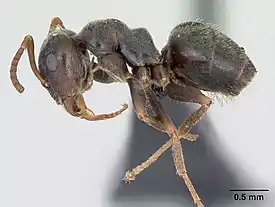 Мелкие муравьи (рабочие менее 5 мм). Окраска тела буровато-чёрная с густым серебристым опушением. Скапус и задние голени без многочисленных отстоящих волосков. Усики самок и рабочих 12-члениковые, у самцов состоят из 13 сегментов. Жвалы трёхугольные с 5—7 зубчиками на жевательном крае. Нижнечелюстные щупики состоят из 6 члеников, а нижнегубные — из 4. Стебелёк между грудью и брюшком одночлениковый (петиоль) с вертикальной чешуйкой[1][2][3].