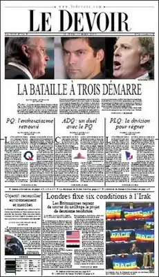 «Девуар»[4] (фр. «Le Devoir», читается как лё девуар, фр. «Долг») — канадская франкоязычная ежедневная газета. Выходит в Монреале. Основана в 1910 году публицистом Анри Бурасса.