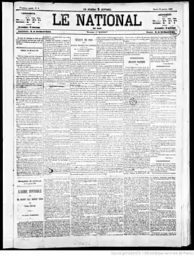 «Le National» [Лё Насьона́ль] — французская бывшая ежедневная газета, основанная в конце декабря 1829 года[2] журналистами Адольфом Тьером, Арманом Каррелем, Франсуа-Огюстом Минье и книгоиздателем Огюстом Сотеле́ (Auguste Sautelet), и превратившаяся в орган борьбы против Второй реставрации; выходила вплоть до 31 декабря 1851 г.