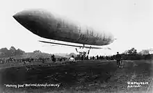 103 | 12 | 9,800 | 270 | 55 | Армия Великобритании, куплен по национальной подписке, проведенной лондонской газетой The Morning Post. Объём баллонета 2,500 m³. 2 двигателя Panhard-Levassor, два винта. 26 октября 1910 г. вылетел из Муассона в Олдершот (преодолел 370 км за 5,5 часов), но был повреждён при стоянке. Через несколько месяцев после ввода в эксплуатацию, 4 мая 1911 года потерпел крушение в результате неправильного маневрирования (приземлился на деревья). | ![]() Дирижабль Morning Post во время взлёта. |