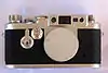 | Leica F (Leica III) | 1933—1939 | Усовершенствованная Leica II с дополнительной головкой длинных выдержек на передней стенке корпуса. Повышено увеличение дальномера и добавлена диоптрийная коррекция рычагом, соосным с окуляром[1] | ![]() |