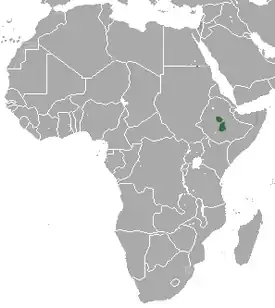 Lepus starcki встречается только в Эфиопии, на территории Эфиопского нагорья (национальный парк Бале). Ареал ограничен высотами от 2140 до 4380 метров над уровнем моря. Типичная среда обитания — горные луга и пустоши афро-альпийского типа. В пределах ареала вид встречается часто (плотность популяции варьирует от 8,5 до 25,4 особей на км²[3]), угрозы существованию вида нет.