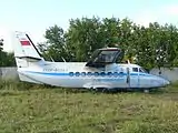 Let L-410 «Turbolet» (другие названия: Л-410, Лет-410, «Турболёт», «Чебурашка»[4]) — лёгкий многоцелевой двухмоторный самолёт для местных воздушных линий (МВЛ). Разработан в 1966—1967 годах[5] конструкторским бюро чехословацкого авиационного завода Let Kunovice (ныне — чешский завод Aircraft Industries). Предназначен для эксплуатации на неподготовленных грунтовых, травяных, снежных площадках, а также на аэродромах с короткими ВПП. Способен перевезти до 19 пассажиров или 1800 кг груза на расстояние до 1500 км. Использует американские двигатели GE H80-200 (GE Aviation Czech s.r.o)[6][7], после завершения сертификации российского турбовинтового двигателя ВК-800 (АО «Уральский завод гражданской авиации» и АО «ОДК–Климов») предполагается устанавливать его[8].