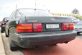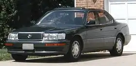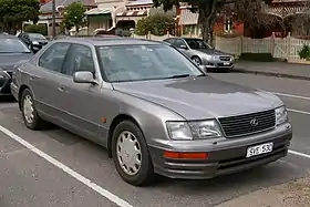 Первые автомобили нового бренда Lexus были представлены общественности в январе 1989 года на Международном автосалоне в Детройте[20]. Изначально модельный ряд состоял из среднеразмерного переднеприводного седана ES250 (создан на базе Toyota Camry) и флагмана — LS400. Представительский заднеприводный седан, подготовленный в качестве конкурента для BMW E32 и Mercedes W126, вобрал в себя самые передовые решения от концерна Toyota — начиная с силового агрегата и заканчивая элементами комфорта. Новый 4-литровый 32-клапанный алюминиевый двигатель 1UZ-FE конфигурации V8 выдавал мощность в 250 л. с. (190 кВт) и крутящий момент 353 Нм[21]. Трансмиссия — четырёхступенчатый автомат с электронным управлением ECT-i[22]. Шасси использовало независимую, двухрычажную подвеску[23], либо пассивную систему пневмоподвески как опцию[24]. Всё это позволяло седану разгоняться до 100 км/ч за 8,5 секунд, максимальная скорость составила 250 км/ч[25]. По сравнению с конкурентами, BMW 735i (E32) и Mercedes-Benz 420 SE (W126), Лексус имел шумоизолированный салон, с уровнем шума в 58 дБ при движении со скоростью 100 км/ч, более высокую максимальную скорость, более низкий коэффициент аэродинамического сопротивления и массу, а также не облагался американским налогом на излишний расход топлива[26][27][28]. С появлением в 1989 году, он сразу стал автомобилем года в Японии. В сентябре 1989 года начались продажи Lexus в США, а следом, и небольшими партиями в Австралии, Канаде и Великобритании[29].