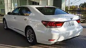 После дебюта в 2005 году гибридного концепта LF-Sh, в мае 2007 года Lexus начал продажи LS 600h L (UVF46), первого серийного гибридного автомобиля с двигателем V8[92], как модель 2008 года.[103] Длиннобазный LS 600h L получил гибридный привод Lexus с 5-литровым двигателем 2UR-FSE конфигурации V8 в паре с мощным электродвигателем на никель-металл-гидридных аккумуляторах[92]. Эта система использует бесступенчатую трансмиссию и имеет мощность 439 л. с. (327 кВт)[92]. Экономия топлива немного выше, чем у маломощных не-гибридных LS и гибридов, выполнявших американский стандарт SULEV[104][105]. Особенности, характерные для гибридов LS включают светодиодные фары, кожаную отделку панели и собственный шильдик[89]. В апреле 2007 года, Lexus объявил, что базовая стоимость на LS 600h L составит более 104 000 долларов[106], что превышает стоимость Toyota Century, оборудованного двигателем V12, и являющегося самым дорогим японским представительским автомобилем из когда-либо выпускавшихся[106]. Версия со стандартной колесной базой, предназначенная для Азии и Европы, LS 600h (UVF45), впервые появилась в Японии в мае 2007 года[107]. Первая сотня седанов LS 600h L, проданных в США, предлагалась как модель «Launch Edition» через каталог Неймана Маркуса для членов InCircle[108].