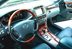 Интерьер LS 430 имеет кожаную обивку и деревянные включения под грецкий орех на приборной панели и в верхней части дверных карт[65][70]