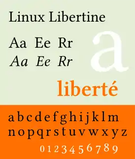 Linux Libertine — свободно распространяемый компьютерный шрифт с открытым исходным кодом. Имеет двойную лицензию: GPL и OFL. Создан в рамках проекта Libertine Open Fonts Project, который ставит целью создание свободной и открытой альтернативы таким коммерческим шрифтам, как Times New Roman. Разработан с помощью свободного редактора шрифтов FontForge.[3]