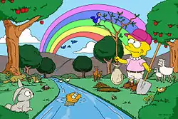 | Сцена на диване | К Мэгги на диван садятся Симпсоны, переодетые в Телепузиков, чем вызывают её восторг. |