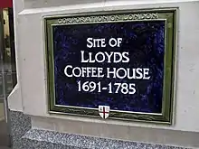Оригинальный фасад 17-го века кофейни «Lloyd's Coffee House» принадлежит в настоящее время рынку страхования «Lloyd's of London», а в 2011 году был временно перестроен для экспонирования в Национальном морском музее . Синяя табличка на Ломбард-стрит ознаменовывает второе местоположение кофейни (в настоящее время занимаемое на уровне земли супермаркетом «Sainsbury's»)[4]. Это было обыграно в фильме 1936 года «Lloyd's of London».