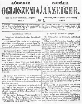 2 декабря 1863 года в количестве 300 экземпляров вышел первый номер двуязычной польско-немецкой газеты «Łódzkie Ogłoszenia — Łodźer Anzeiger» («Лодзинские объявления»). Издание быстро завоевало популярность у читателей, благодаря тому, что в нëм регулярно стали появляться не только рекламные объвления и сообщения об уголовных происшествиях, но и статьи на разнообразные темы, главным образом, перепечатки столичных газет и журналов.
