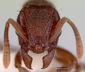 Усики состоят из 12 члеников. Мандибулы треугольной формы с 7 и более зубцами. Проподеальные шипики развиты. Клипеус с двумя бороздками[1][2].