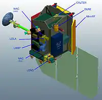 - LEND (The Lunar Exploration Neutron Detector), ЛЕНД («Лунный исследовательский нейтронный детектор») — прибор российского производства, для составления подробных карт содержания атомов водорода в лунной поверхности[9][10].