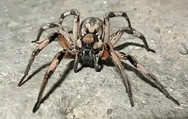 Крупный представитель своего семейства. Длина тела составляет более 2,6 см; головогрудь длиной около 1 см и шириной 7,5 мм. Основная окраска серая или чёрная со светлыми отметинами; стернум и лабиум коричневые, брюшко жёлтое с белыми и чёрными щетинками. Хелицеры и пальпы коричневые с чёрными щетинками. Базальный сегмент хелицер с 3 промаргинальными и 3 ретромаргинальными зубцами. Длина бёдер задней ноги 8,6 мм, а передней — 7,4 мм. Отличается от других видов рода двумя хорошо развитыми передними эпигинными карманами и глубоким разрезом между ними.