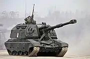 Самоходная артиллерийская установка на гусеничном шасси с вращающейся башней.