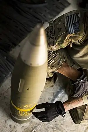 Применяемые боеприпасы от 155-мм гаубица M114: осколочно-фугасные снаряды M107 и M795, активно-реактивный осколочно-фугасный снаряд M549, кассетные снаряды M449A1, M483A1, M692 и M718/M741, осветительные снаряды M485 и M818, дымовой снаряд M825, управляемый снаряд M712 «Копперхед», практический снаряд M804.