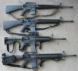 ![]() Сверху вниз: M16A1, M16A2, M4А1, M16A4 | |