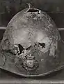 Пробитый пулями шлем М1923 датского солдата, погибшего 9 апреля 1940