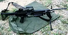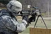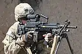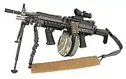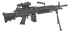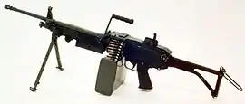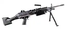 5,56-мм ручной пулемёт M249 SAW (в пер. букв. «пила», сокращение от Squad Automatic Weapon[5] — «автоматическое оружие отделения») — вариант ручного пулемёта FN Minimi для армии США калибра 5,56×45 мм американского производства (производится FN Manufacturing, Inc. — местным филиалом бельгийской компании FN Herstal), серийное производство началось в 1980-х годах.