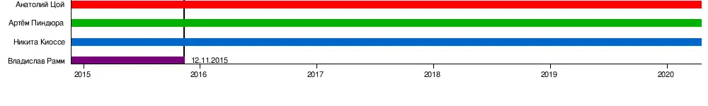 Владислав Рамм (2014—2015) Анатолий Цой (2014—2020) Артём Пиндюра (2014—2020) Никита Киоссе (2014—2020) |