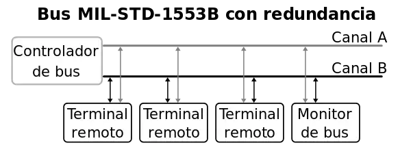 Каналы обмена информацией, выполненные по MIL-STD-1553B, имеют шинную организацию. Есть одна общая магистраль, а к ней, через гальваническую развязку, подключаются абоненты. Количество абонентов может достигать 31. Протокол предусматривает резервирование. То есть каждый из абонентов может быть подключен к двум каналам — основному и резервному, которые в иностранной литературе обозначаются как channel A и channel B соответственно.