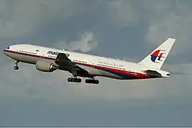 - 17 июля 2014 года. Boeing 777-200ER (регистрационный номер 9M-MRD), выполнявший рейс MH17 Амстердам — Куала-Лумпур, упал на территории Украины в районе села Грабово недалеко от города Тореза[66]. Погибли все 298 человек, находившиеся на борту. Самолёт упал в районе вооружённого противостояния на востоке Украины. Начато расследование, предварительно названная причина катастрофы ракетная атака (поражение управляемой ракетой класса «земля–воздух»).